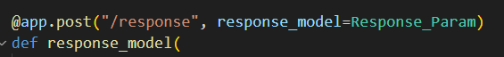 Fast API의 라우트 데코레이터(@app.post("/mian") 이 부분)에는 response_model이라는 것이 있는데 이는 스키마를 고정하고 Swagger UI에 문서화로 설정해서 클라이언트가 응답의 형태를 예측할 수 있도록 해주고, 런타임 시점에 핸들러가 타입을 변경해서 반환을 해도 지정한 모델로 검증 및 변환해서 반환하고 모델에 작성되지 않은 필드는 자동으로 제거 해줌으로써 응답을 원하는대로 제한해서 전달할 수 있게 된다.