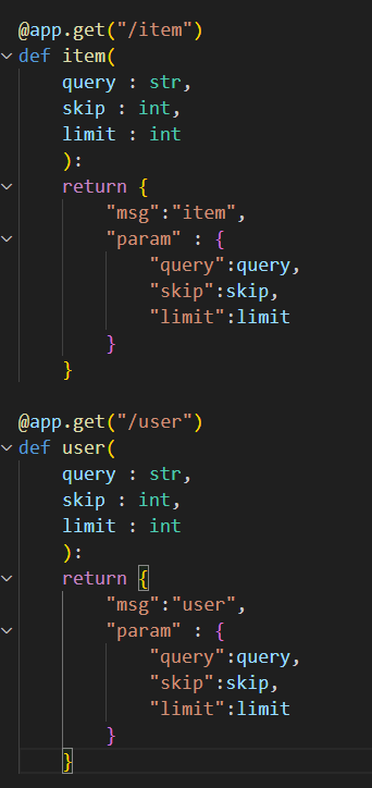 그렇기에 메서드 item과 user의 경우는 매개변수인 query, skip, limit에 의존적인 상태라고 할 수 있다.