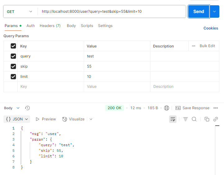 여기서 함수들은 query, skip, limit라는 매개변수를 입력을 받음에 따라 어떻게 결과값이 달라지고 그 매개변수가 존재하지 않는다면 해당 함수들은 동작하지 않게 된다.