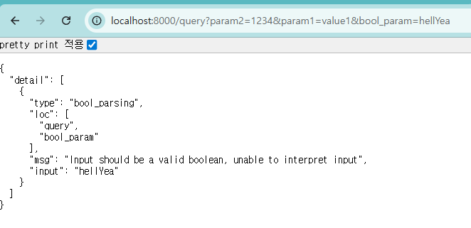 쿼리스트링으로 받을 값의 타입이 bool인 매개변수를 선언했다면