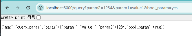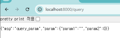 자바에서 쿼리 스트링의 경우는 경로?param=value¶m2=value2 와 같이 전달하면서 값을 받아 사용할 수 있게 해줬었는데 FastAPI도 크게 다를게 없다.