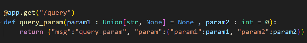 추가로 기본값의 지정을 None으로 설정하는 경우도 있는데 이때에는 Union을 사용해서 선택적으로 값을 선택할 수 있다.