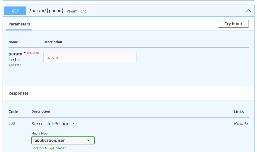 이렇게 어떤 파라미터를 받고 어떤 형태로 성공적인 응답이 반환되는지를 볼 수 도 있고 우측 위쪽에 Try it out을 누르면