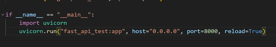 여기서 추가로 간단하게 python명령만으로 서버를 여는 방법이 있는데 아래와 같이 해당 파이썬 파일을 바로 실행할 때 실행될 코드를 uvicorn을 사용해서 실행하도록 하는 방법이다.