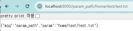 이렇게 경로를 받고 싶을때는 Starlette의 옵션을 직접 사용해서 URL 맵핑 부에서 path를 포함하는 경로 매개변수를 선언하는 것이 가능하다.