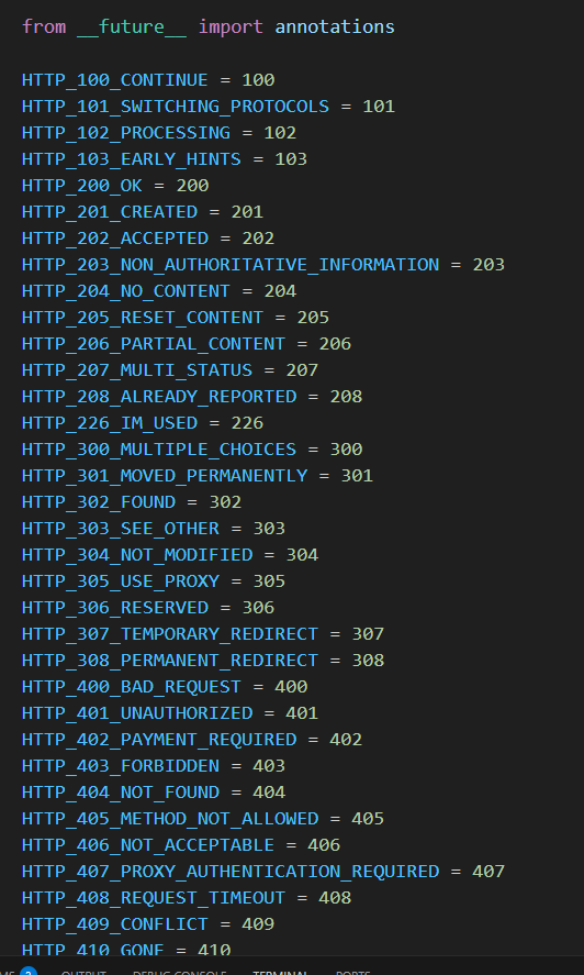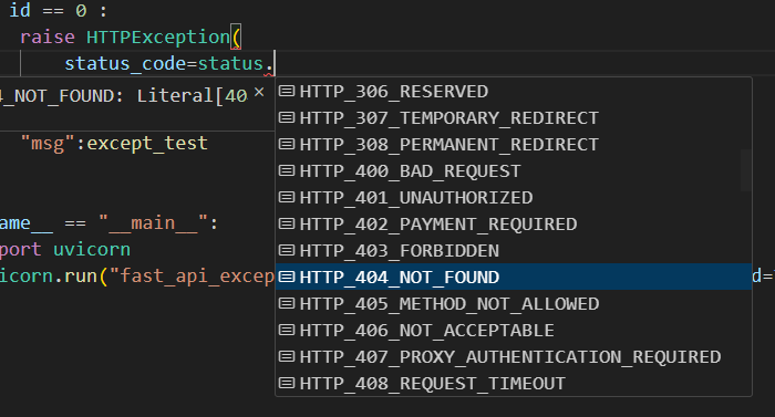 이런식으로도 설정이 가능하나 가독성이 더 좋게 하기 위해서 fastapi의 status 모듈을 import 하고