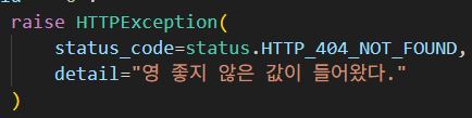 먼저 FastAPI에서는 이 Exception을 처리하기 위해서 HTTPException이라는 모듈을 제공한다.