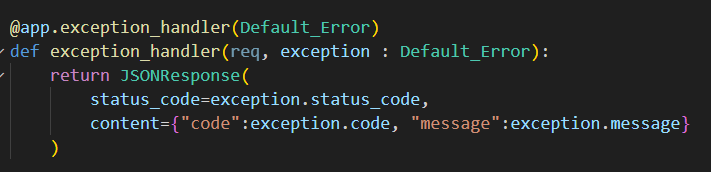 그리고 이제 데코레이터로 app의 exception_handler를 넣어주자