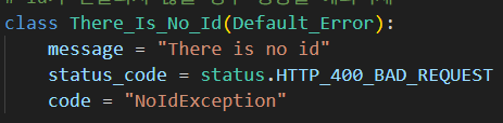 이제 이 HTTPException 내부에 status와 해당 에러에 대한 정보를 전달해줘야한다