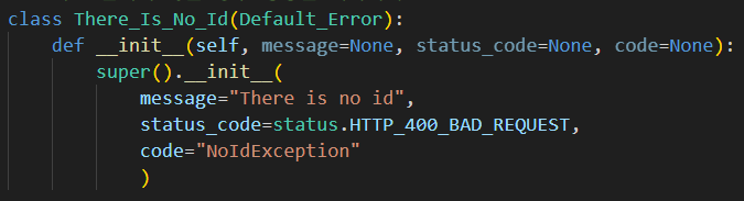 먼저 위에서 봤던것 처럼 id가 들어오지 않아서 기본값만을 응답하는 경우에 대해서 예외 클래스를 만든다면 먼저 기본적인 클래스의 형태를 생성해주고