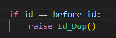 이렇게 기존 ID를 만들어주고 이거랑 동일한 경우에 해당 클래스를 불러 예외로 던지면
