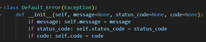 그리고 해당 init 함수를 통해서 message(상세내용), status_code, code(요약 내용)를 받아주도록 파라미터로 넣어주자.