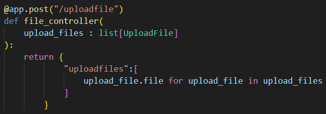 각 File과 UploadFile로 확인해보자면 먼저 File의 경우는 리스트로 타입을 넣어주고 데이터만 for-in으로 list로 뽑아주면 된다.