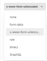데이터를 전송할 타입을 설정하고 (form-data 혹은 x-www-form-urlencoded)
