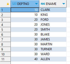 SELECT DEPTNO, ENAME FROM EMP