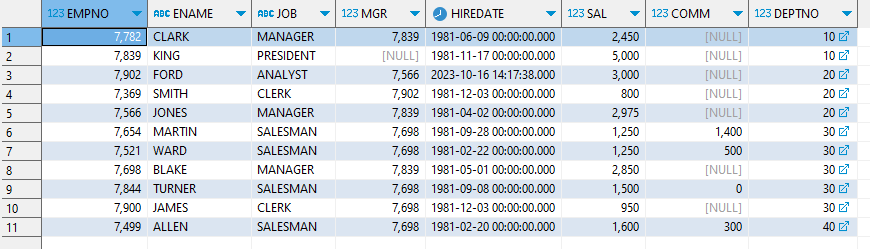 EMP테이블에는 DEPTNO, JOB를 제외한 모든 부분이 사실 공통되는 부분을 갖고 있지 않는다.
