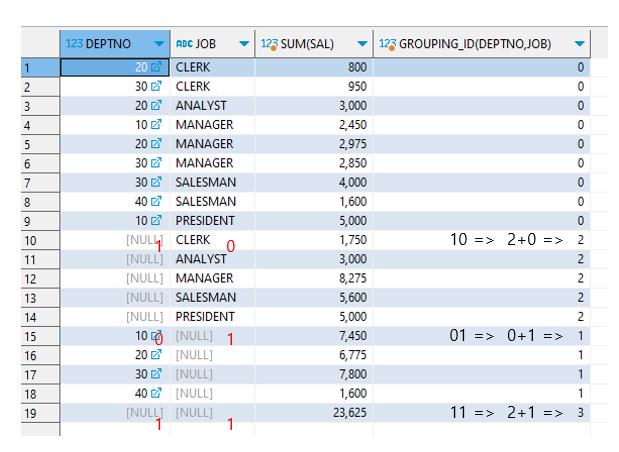 GROUPING_ID(DEPTNO,JOB)