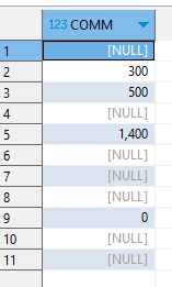 GROUP BY COMM;