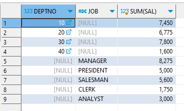 GROUP BY CUBE(DEPTNO);
