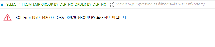 GROUP BY뒤에 오는 컬럼들이 SELECT 뒤에 오는 컬럼과 같지 않다면 오류를 발생한다
