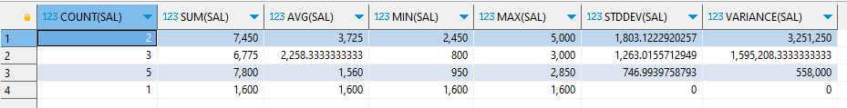 STDDEV(SAL),