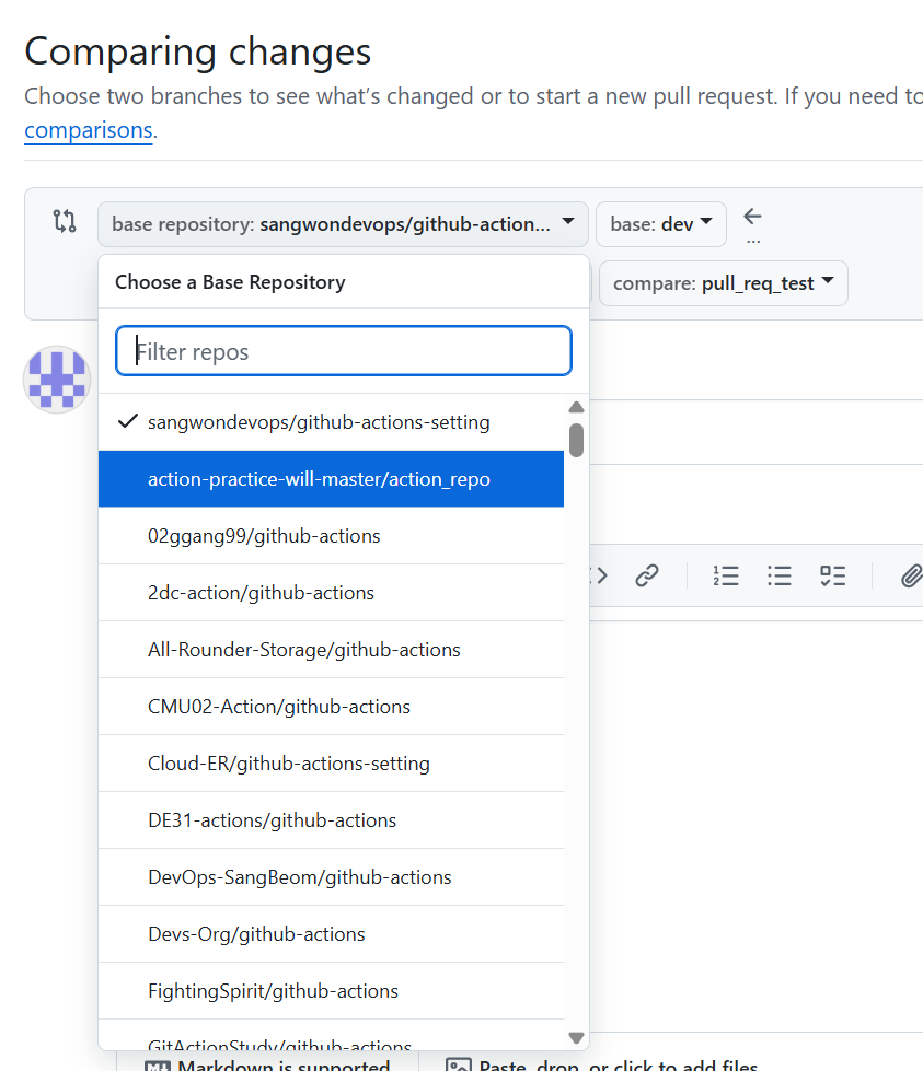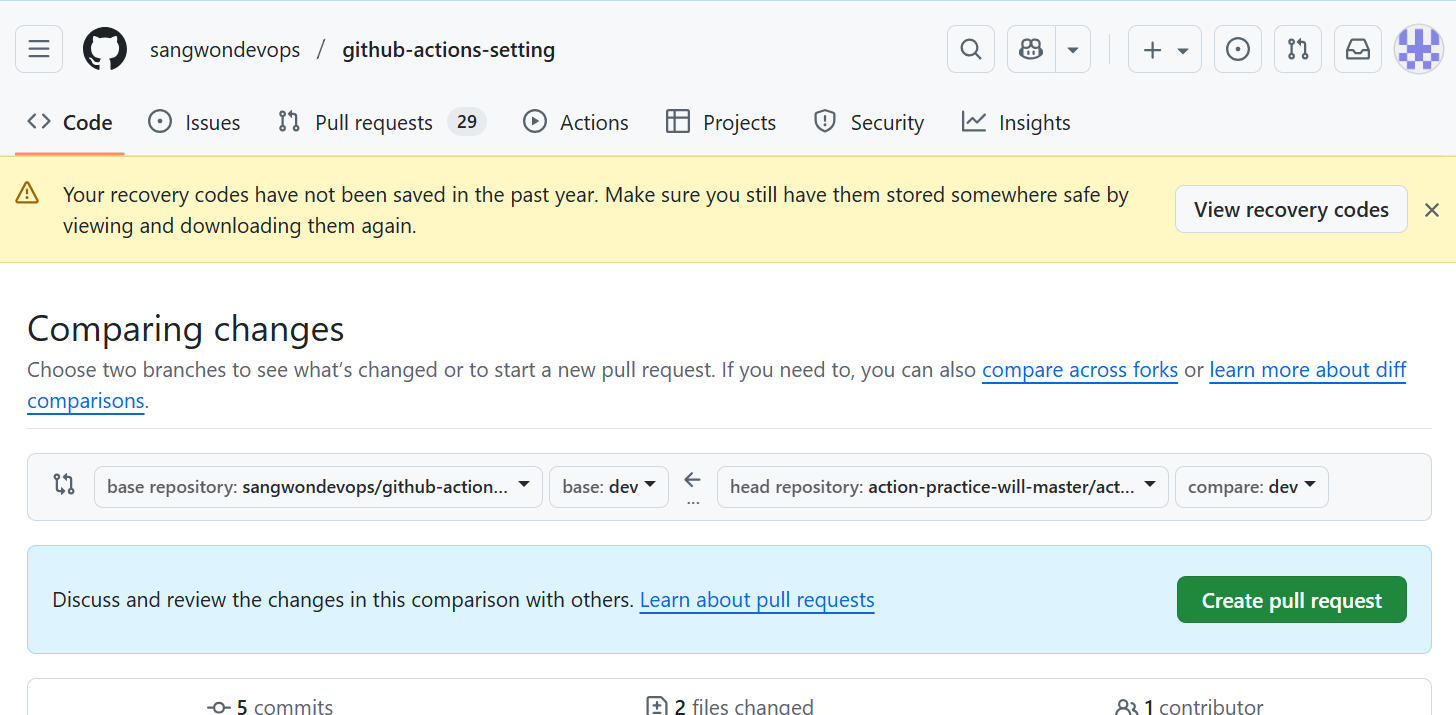 컴페어 풀 리퀘가 안뜨길래 뉴 풀리퀘스트로 만들었는데 들어갓더니