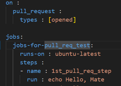 pull request 이벤트에 트리거 될 수 있도록 on으로 이벤트를 지정해주자