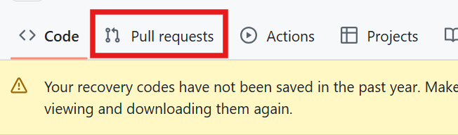 깃허브로 돌아가서 상단 메뉴에서 Pull Request를 클릭해주고