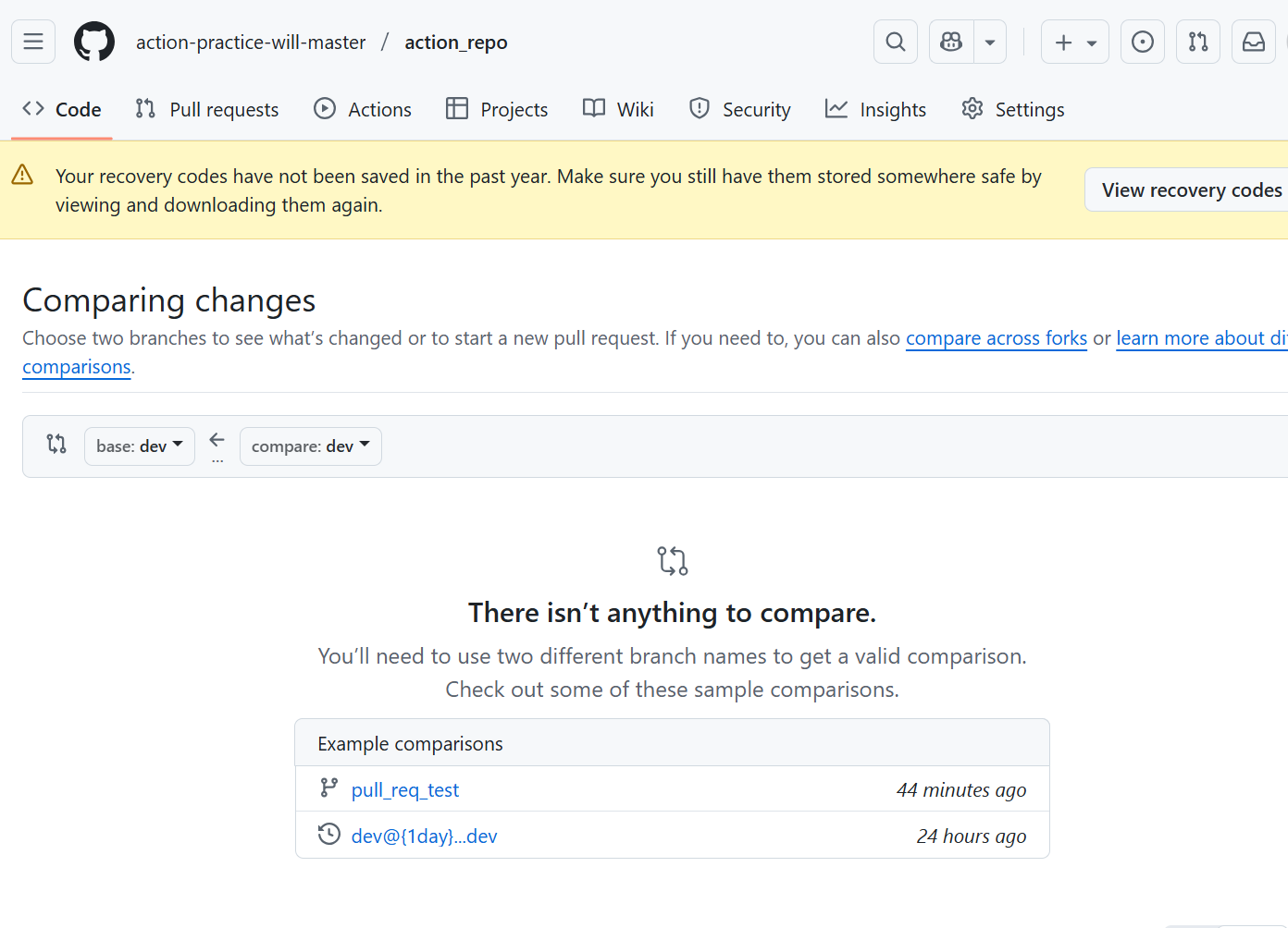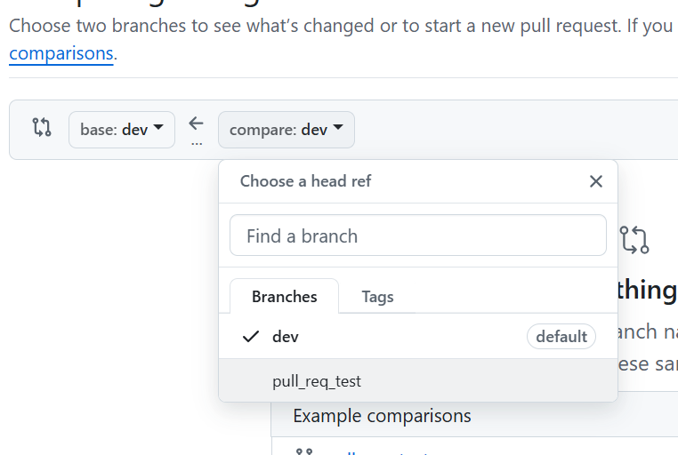이러고 나서 컴페어할 브랜치를 선택해주면
