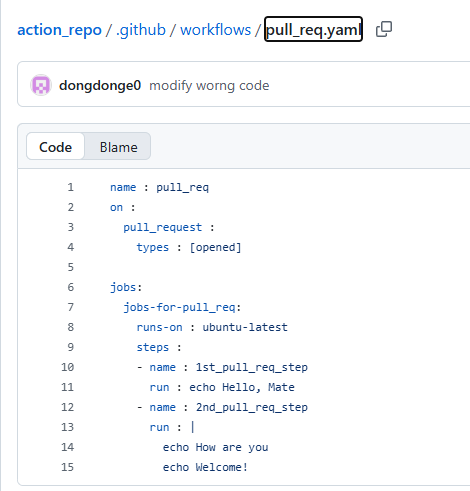 이번에는 Pull Request가 발생했을때 실행될 workflow를 만들어보자.