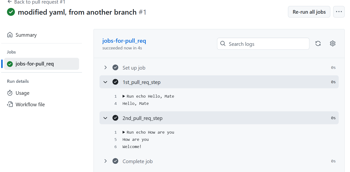 그리고 jobs 부분은 기존에 push를 할때 썼던 workflow를 명칭만 조금 바꿔서 사용하도록 해주자.