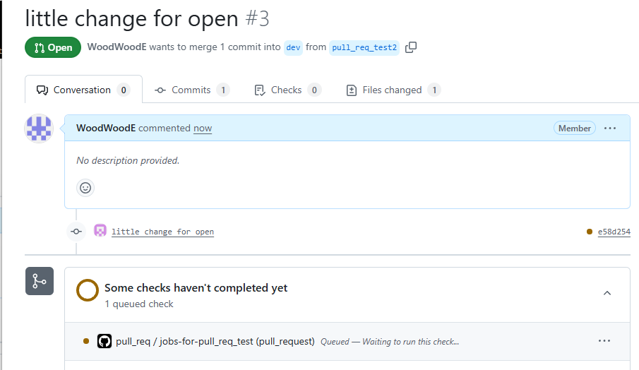 이제 비교를 위해 Pull Request를 최초로 Open해주고