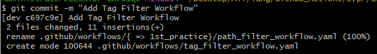 Tag Filter의 경우는 tag가 로컬에서 생성되는 시점이 아니라 Github로 push 되는 시점에 발생하기에 먼저 workflow를 만들어주자.