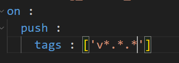 tags:     [ 'v*' ]                # v로 시작하는 태그 푸시일 때만