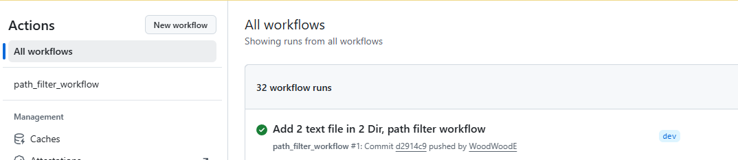 이번에는 우리가 workflow에 작성했던 path인 dev_test의 내부의 파일을 변경해보자.