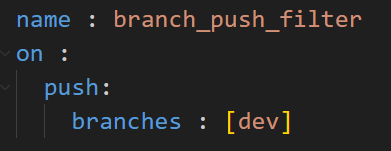 • push 이벤트에서의 branch filter : 푸시된 브랜치 이름이 필터와 매칭될 때만 워크플로우가 실행된다