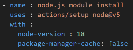 우린 설정 중에 어떤 node를 깔지에 대해서 설정하는 것과, 패키지 매니저가 package.json에 설정되어 있다면 자동으로 캐시하는 부분만 false로 설정해주도록 하자