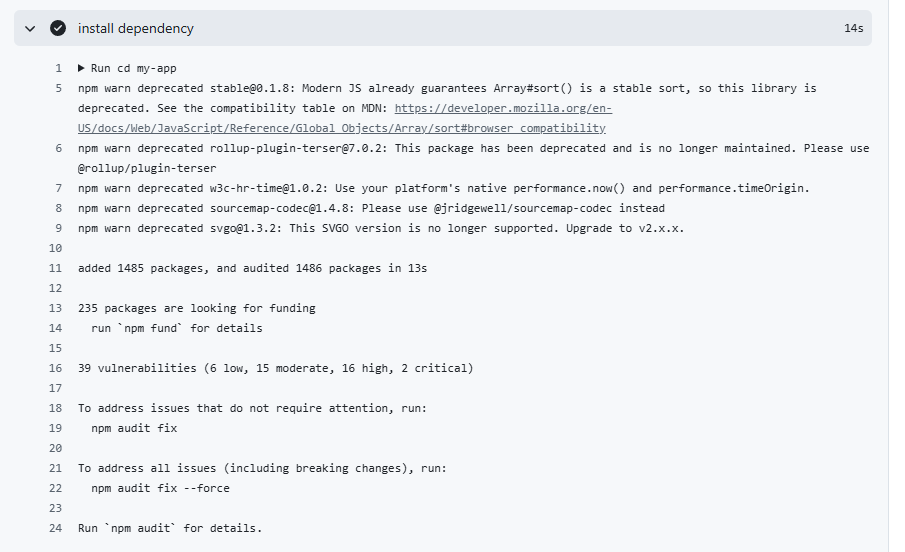 아무튼 배포하기 위해서는 npm ci를 사용해줘야 한다.