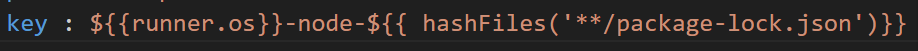 key : ${{runner.os}}-node-${{ hashFiles('**/package-lock.json')}}