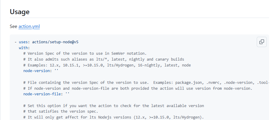 actions의 marketplace에서 보면 아래와 같이 사용방법이 있으니 이걸 보고 기준으로 설정해주도록 하자