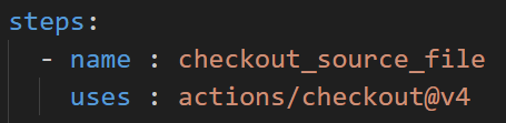 steps부터 작성을 해볼텐데 위에서 말했던거 처럼 결국엔 시작은 소스를 checkout하는 것이 필요하다.