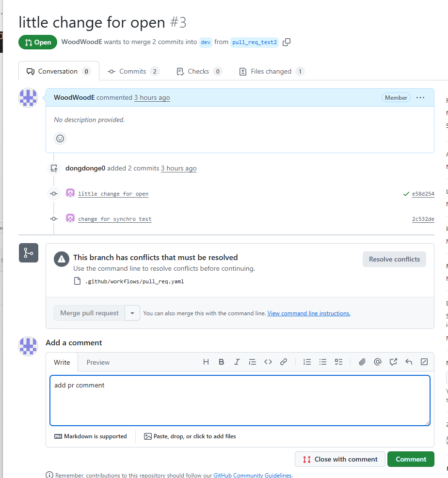 그러면 comment에 의해서 workflow가 trigger된걸 볼 수 있고 내부를 보면