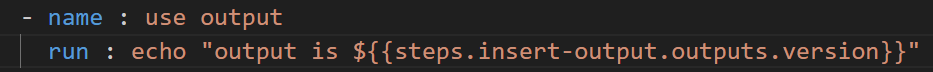 그리고 이걸 다음 step에서 ${{steps.insert-output.outputs.version }} 을 사용해서 값을 가져와주자.