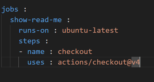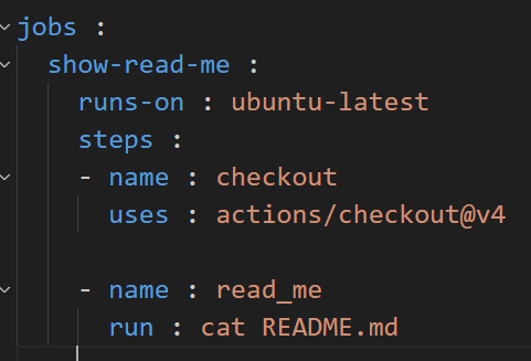 이러고 다음 steps에서 이렇게 README.md 파일이 러너에 떨어진다는 가정하게 읽을 수 있게