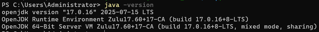 $env:JAVA_HOME="C:\Users\Administrator\.jdks\azul-17.0.16"
