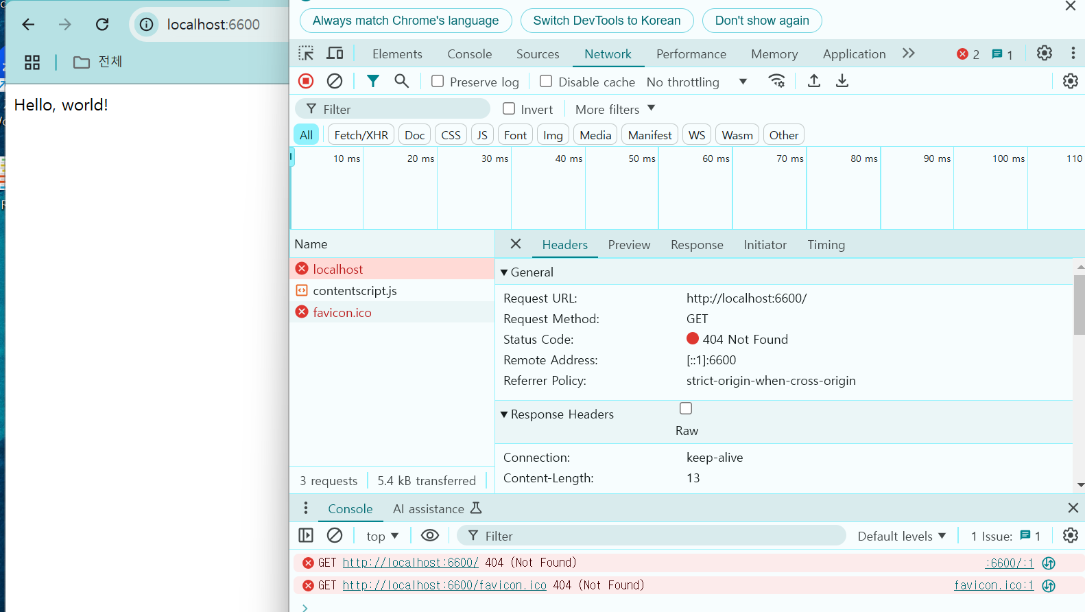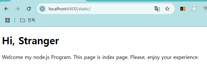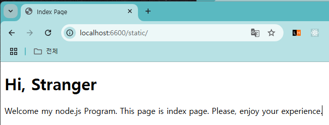 이렇게 작성한 후에 node server.js를 터미널에 입력해서 서버를 실행시켜준 다음에 브라우저에서 localhost:6600으로 접속해보면