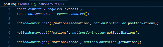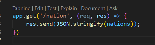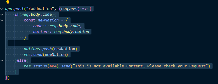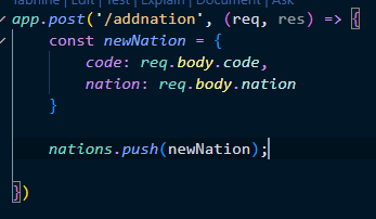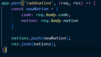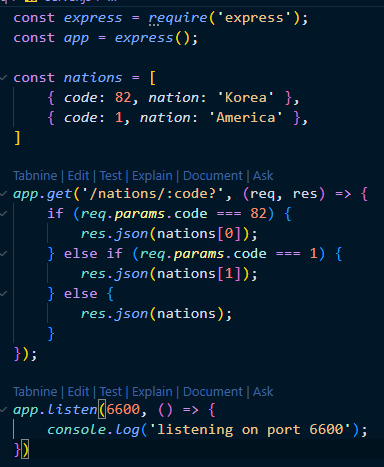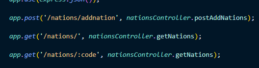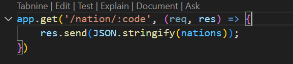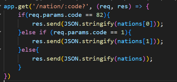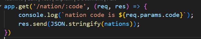 먼저 get메서드에 path에 해당하는 부분에 /nation이라고 되어 있는 부분을 /nation/:code라고 변경해주자.