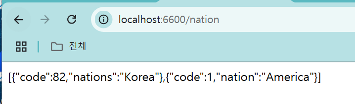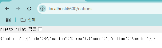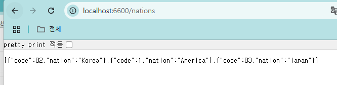 전체 국가 배열 객체를 응답하도록 설정해주면