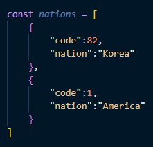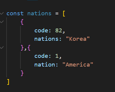 예를 들어서 전역 변수에 nation 배열 객체로 국가코드와 국명이 들어 있다고 가정해보자.