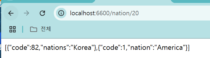 이러면 이제 우리가 /nation/1 혹은 /nation/82로 요청을 보내면 code 부분에 해당 값을 담아 변수처럼 사용이 가능해진다.